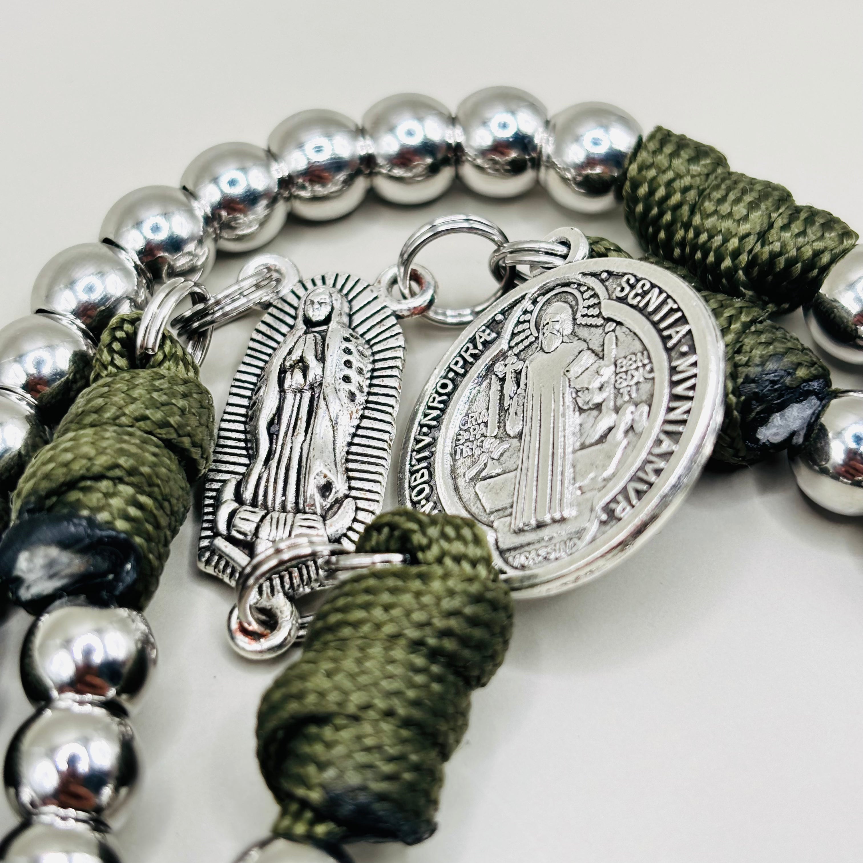 Onze rozenkransen worden gemaakt van duurzaam paracord en roestvrij staal. Hierdoor zijn ze vrijwel onverwoestbaar en bestand tegen dagelijks gebruik.