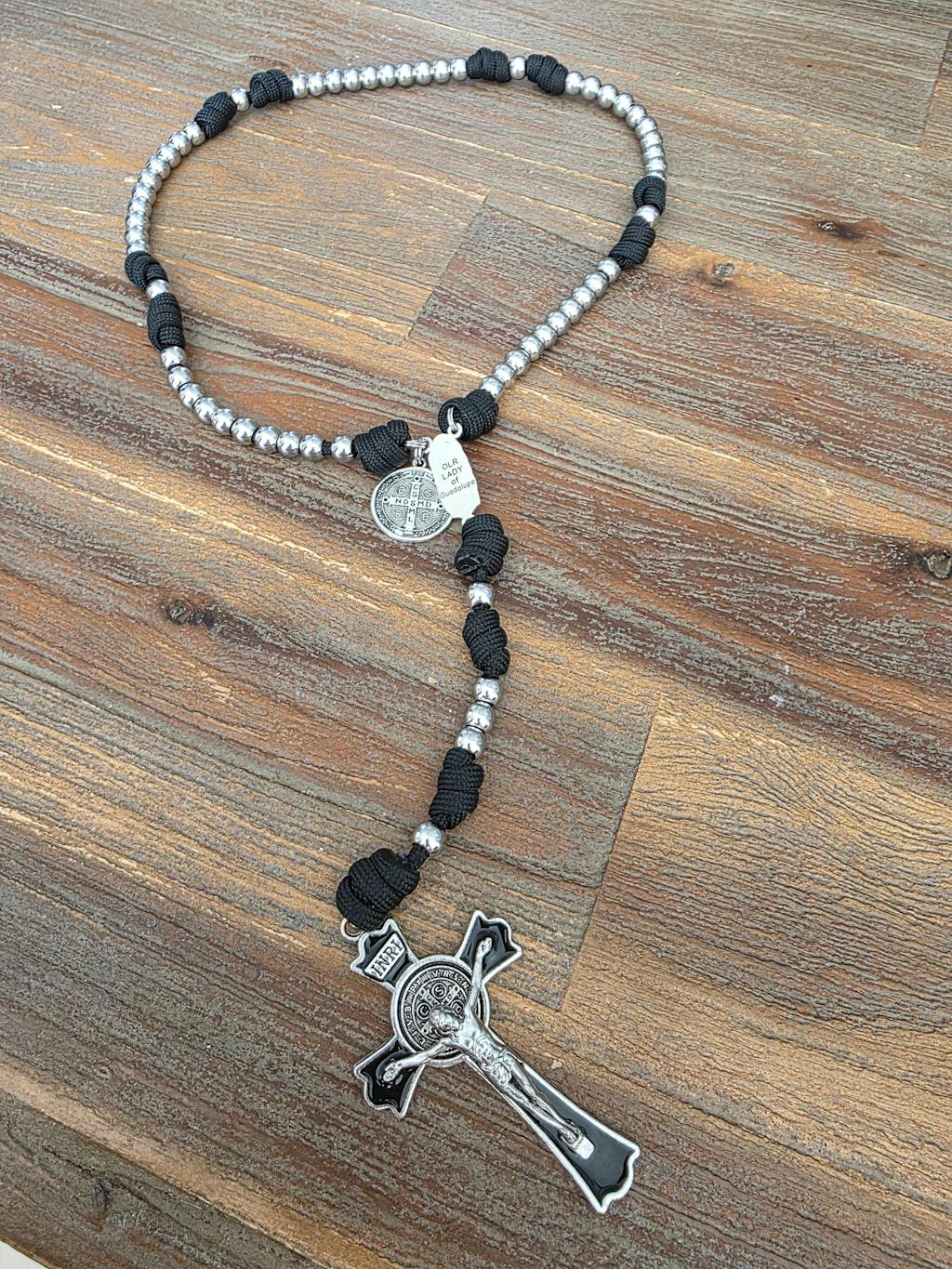 Zwart als de nacht, sterk als het geloof dat niet breekt. Deze rozenkrans is gemaakt voor hen die bidden in stilte, die kracht vinden waar anderen duisternis zien.